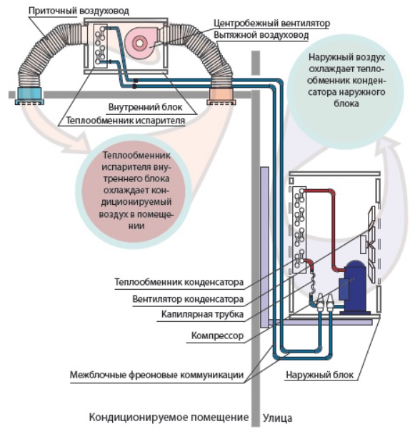 Канальная сплит-система on-off полупромышленного типа. Монтируется в подшивные и подвесные потолки бытовых и коммерческих помещений: офисы, квартиры, торговые здания, холлы, гостиничные комплексы и т.д. Имеется функция «подачи свежего воздуха с улицы». Возможна доработка зимним комплектом, для эксплуатации устройства при низких температурах до – 40 °С наружного воздуха. Воздушный фильтр предотвратит попадание пыли, насекомых и пуха в помещение.