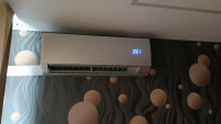 В августе установили кондиционер. Очень необычный, искали серебристого цвета, нашли вот этот! Фактура льняной ткани и цвет без примесей, кому важно! Установили аккуратно и быстро, у нас был Александр. Ждем когда приедет сын и подключит к Алисе!