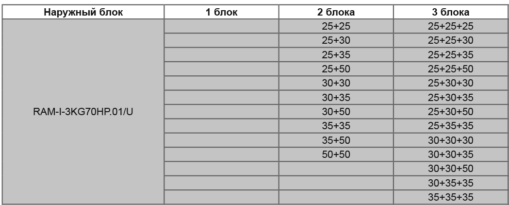 Данная модель наружного блока рассчитана на подключение 3 внутренних блоков и имеет общую площадь охлаждения до 70 кв.м.