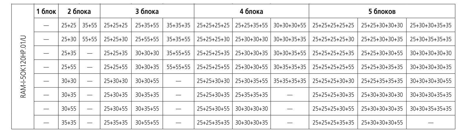 При подключении нескольких внутренних блоков, суммарная производительность которых превышает номинальную мощность наружного блока, при одновременной эксплуатации каждый из них будет работать со сниженной производительностью. Такой вариант подключения допускается в случае, когда внутренние блоки используются не одновременно (например, ночью – спальня, днем – гостиная).