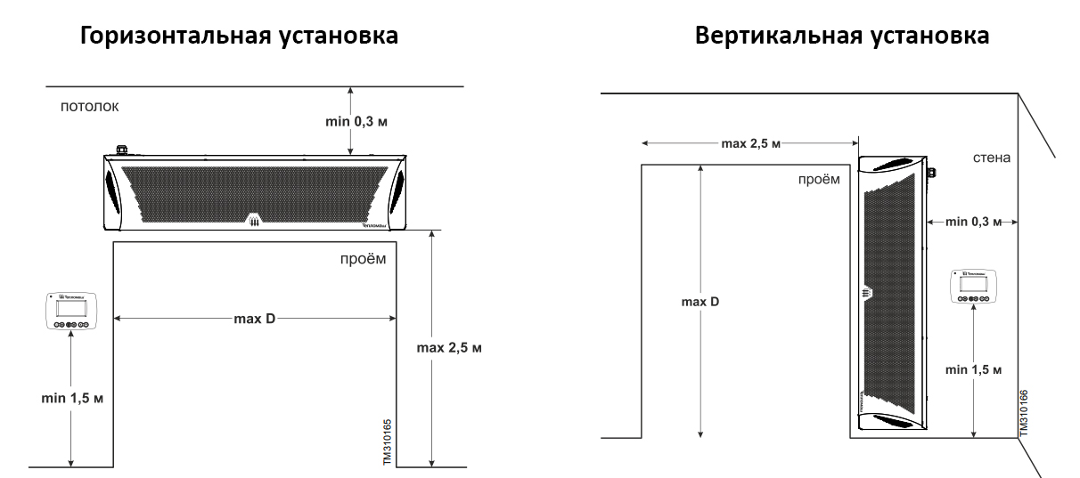 Тепловая завеса смесительного типа, предназначена для защиты помещений от прямого контакта с наружным воздухом через открытые двери в холодный период времени. Устанавливается внутри помещения, горизонтально над проемом или вертикально, сбоку от него, как можно ближе к краю. При большой ширине проема можно располагать сразу несколько завес вплотную друг к другу и управлять ими с одного пульта. Подходит для установки в складских помещениях, гаражах, гостиницах, кафе, торговых павильонах и др.