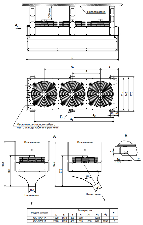 Управление завесой и подключение к электрической сети: