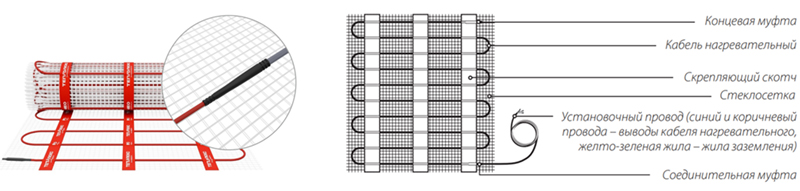 - Тонкий нагревательный мат: толщина кабеля около 3,5 мм, не поднимает уровень пола