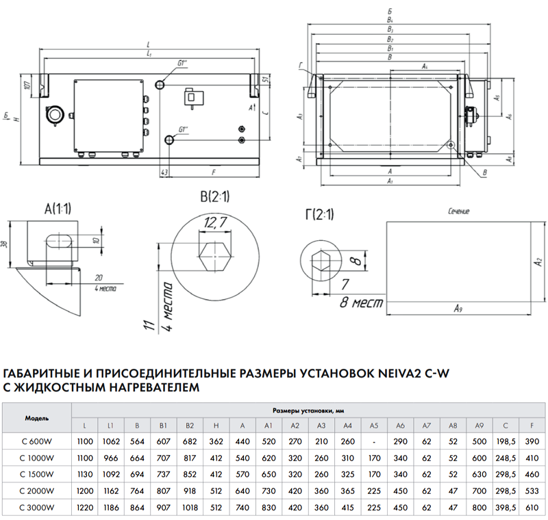Приточная установка Neiva 2 C-1000-W1-F5-OF-DZ-R